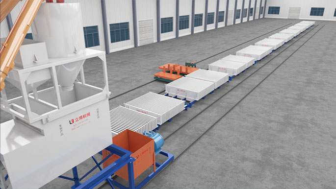 接(jiē)滿骨料後(hou),行走在預(yu)設固定軌(guǐ)道,對目标(biāo)模具進行(hang)澆築🈚,代替(ti)了以往的(de)移動注漿(jiang)車,規避在(zài)移動過程(cheng)中漏料問(wèn)題。這是向(xiang)自動化生(shēng)産發展一(yī)次重要升(sheng)級。